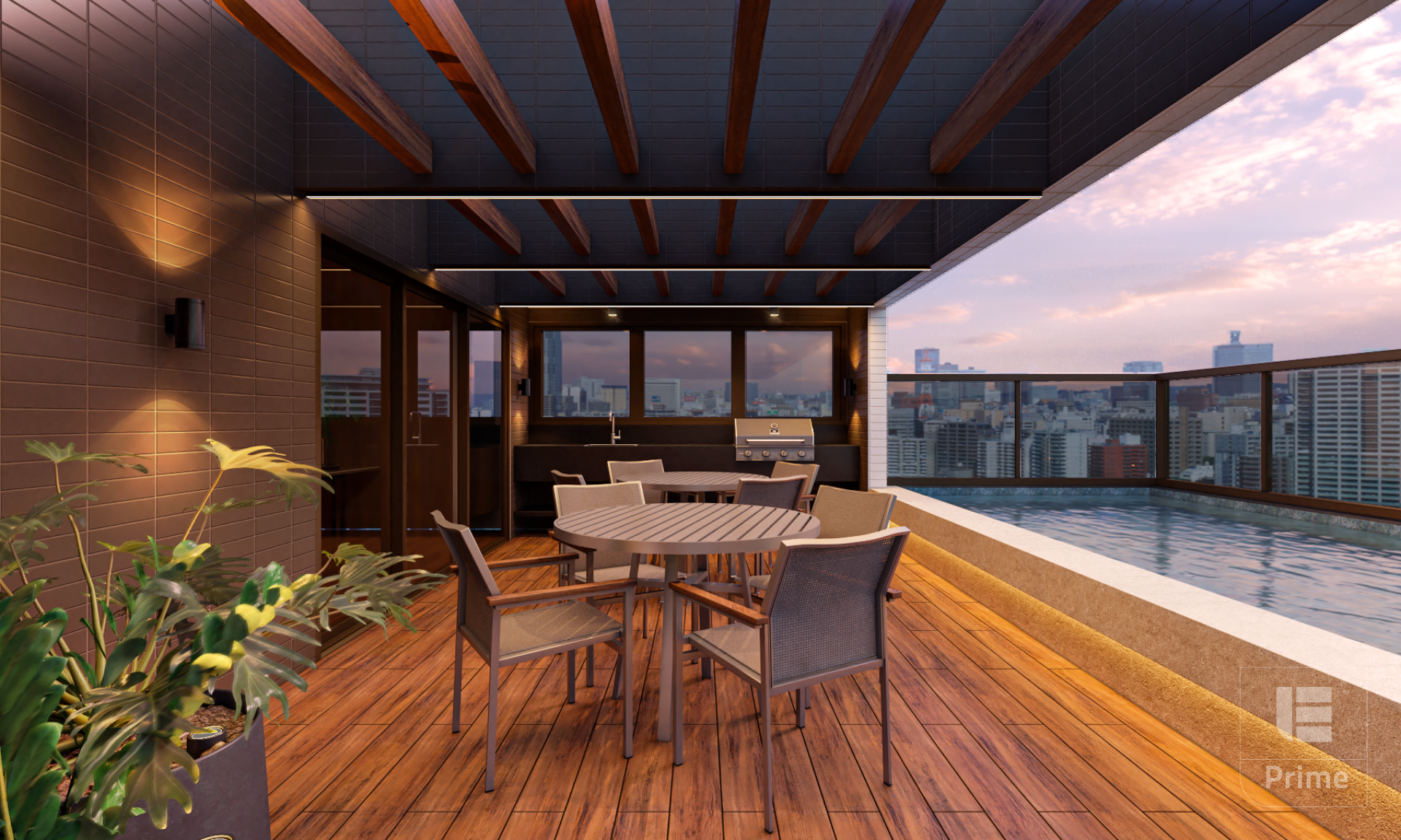Cobertura com piscina com deck,